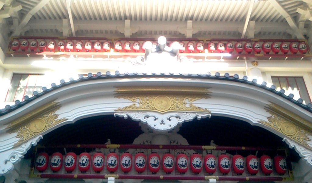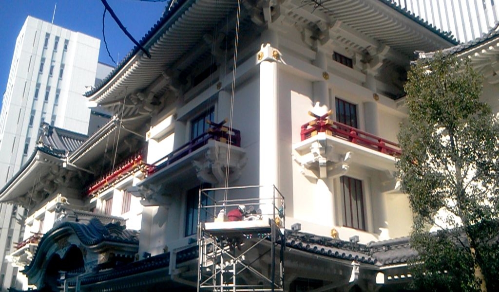 建て替え中の東銀座の歌舞伎座は周りの囲いが取り外されて、新しい外観が見え始めていました。