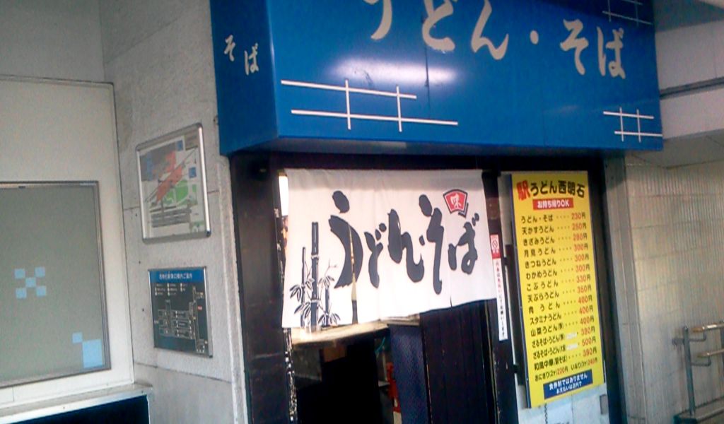 東京と違い駅のスタンドそば屋さんの暖簾は「うどん・そば」と、うどんの文字が先に来ます。